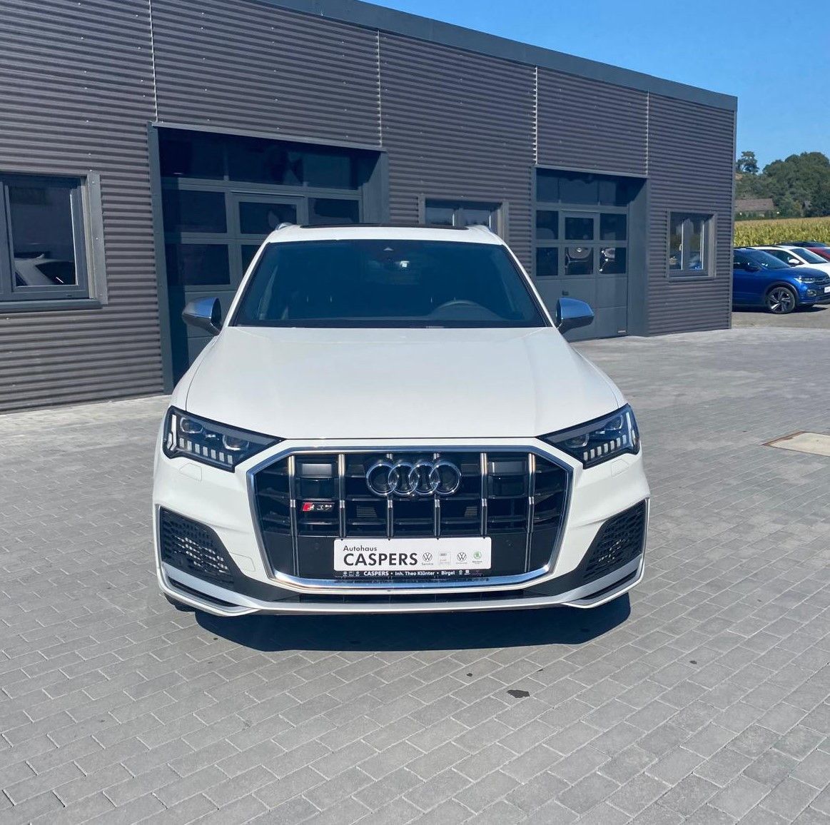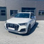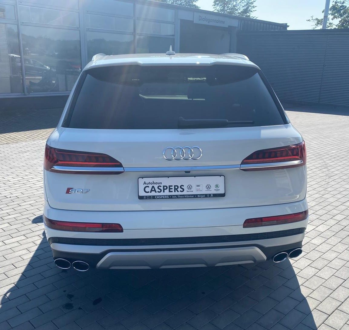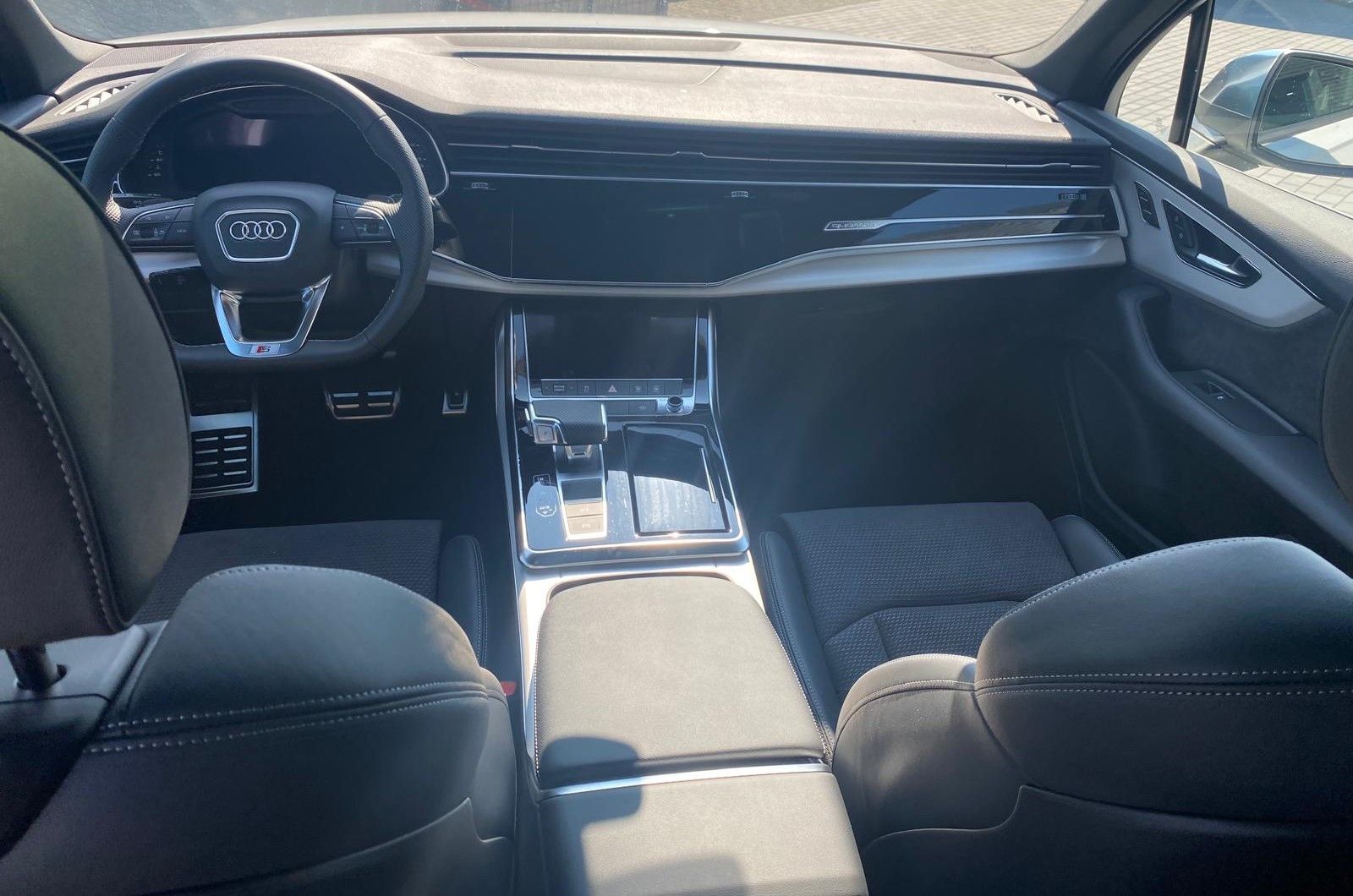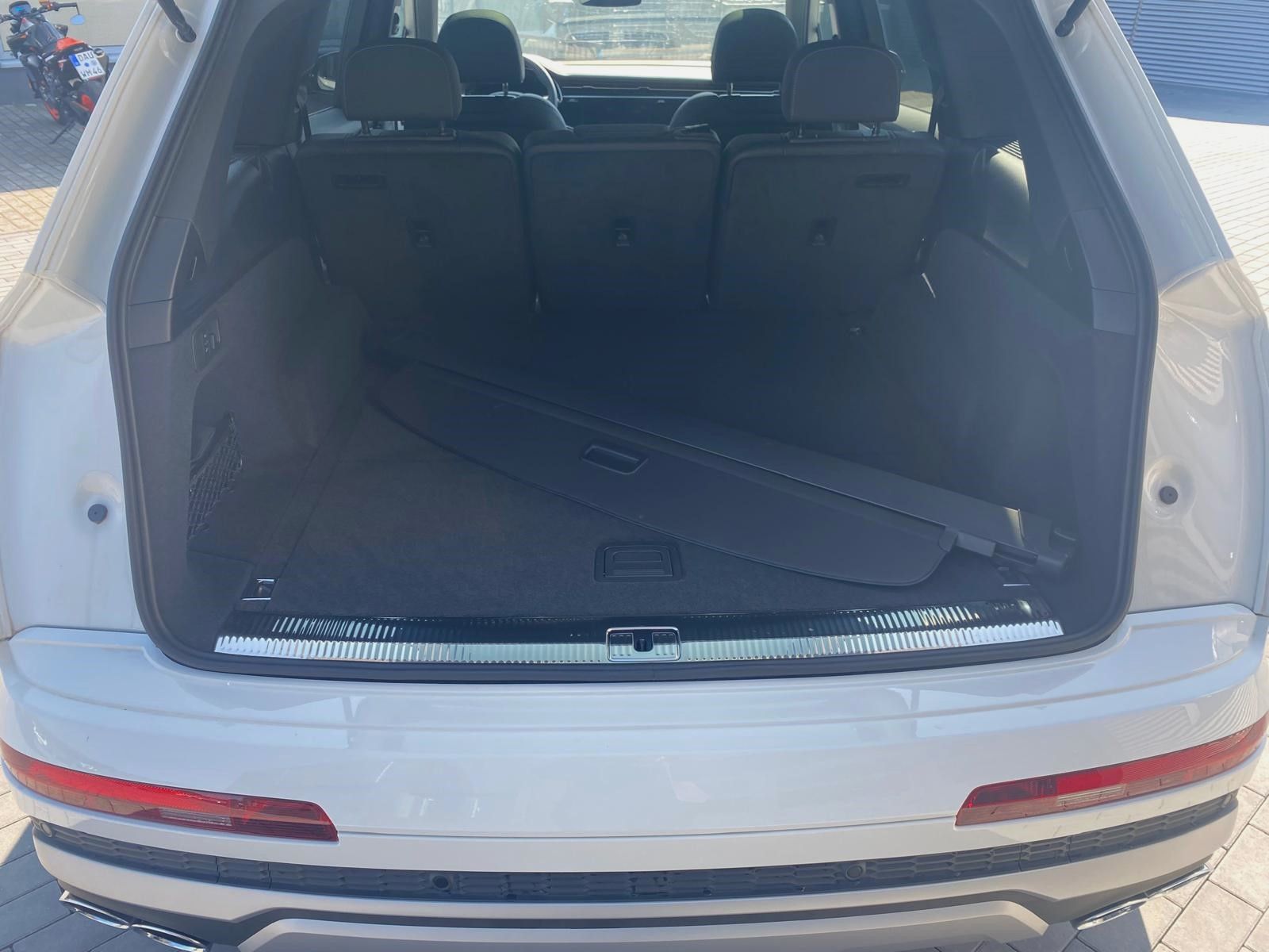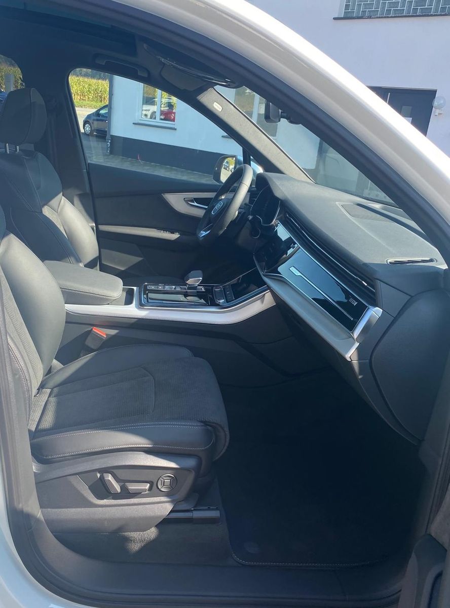 Audi Smartphone Interface, Außenspiegel elektr. verstell-, heiz- und anklappbar, mit Memory, Bremssättel Rot lackiert, Isofix-Aufnahmen für Kindersitz an Beifahrersitz, Lenkrad (Sport/Leder - 3-Speichen, unten abgeflacht) mit Multifunktion und Schaltfunktion, LM-Felgen 9,5x21 (5-Doppelspeichen V-Design, kontrastgrau, teilpoliert), Matrix-LED-Scheinwerfer mit Laserlicht, Panoramadach elektrisch - vorn und hinten, Panoramadach vorn elektrisch, hinten fest, Radioempfang digital (DAB), Reifendruck-Kontrollsystem, Rückfahrkamera, Verglasung hinten abgedunkelt (Privacyverglasung)