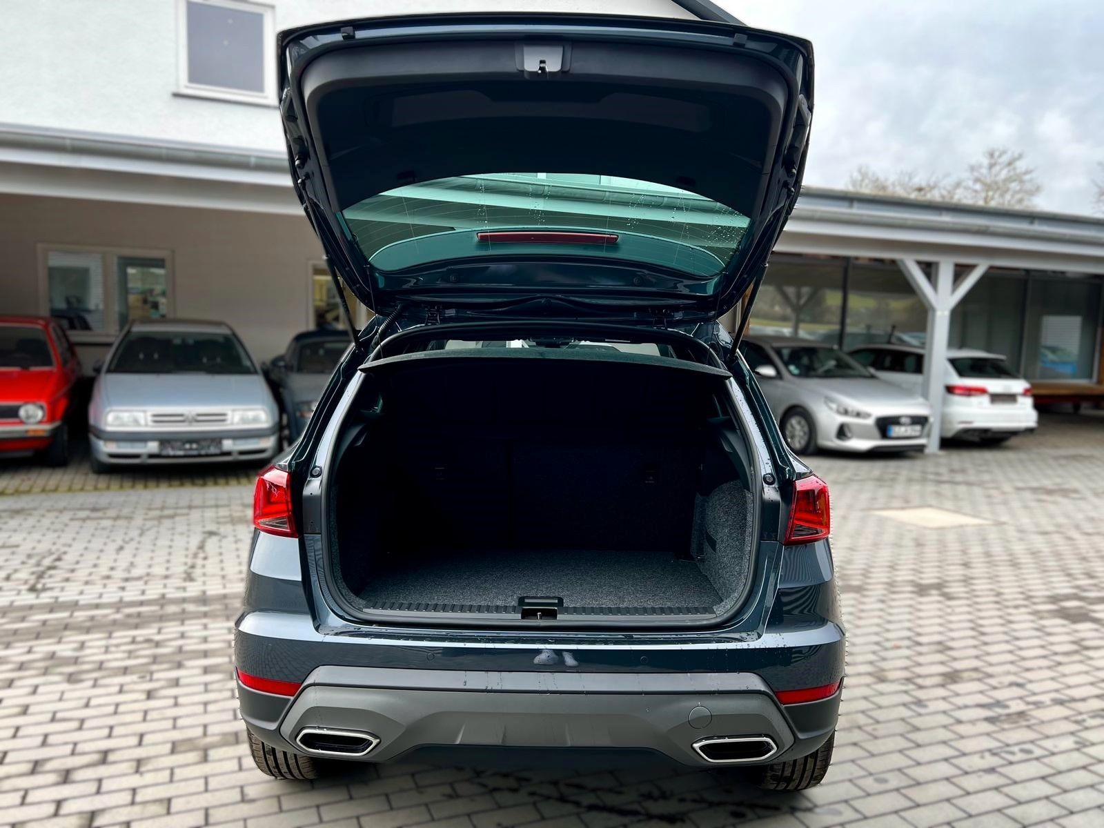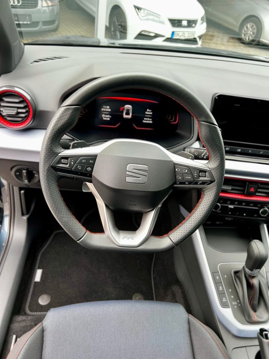 3. Bremsleuchte, Airbag Beifahrerseite abschaltbar, Airbag Fahrer-/Beifahrerseite, Ambiente-Beleuchtung LED, Antriebs-Schlupfregelung (ASR), Außenspiegel Dachfarbe, Außentemperaturanzeige, Bordcomputer, Bremsassistent, Chromleisten an Seitenfenstern, Dachhimmel schwarz, Dachreling, Einparkhilfe hinten, Einschaltautomatik für Fahrlicht, Elektr. Bremskraftverteilung, Elektron. Querdifferentialsperre (XDS), Fahrassistenz-System: Ablenkungs- und Müdigkeitserkennung, Fahrassistenz-System: Berganfahr-Assistent (Hill-Holder), Fahrassistenz-System: Fahrprofilauswahl (SEAT Drive Profile), Fahrassistenz-System: Multikollisionsbremse (Multi Collision Brake), Fahrassistenz-System: Spurhalteassistent, Fahrassistenz-System: Umfeldbeobachtungssystem (Front assist) mit City-Notbremsfunktion, Fahrassistenz-System: Verkehrszeichenerkennung, Fußraumbeleuchtung vorn LED, Gepäckraumabdeckung / Rollo, Geschwindigkeits-Begrenzeranlage, Gurtstraffer hinten, Heckleuchten LED, Heckscheibe heizbar, Heckscheibenwischer, Innenraumfilter: Pollenfilter, Isofix-Aufnahmen für Kindersitz, Karosserie: 5-türig, Klima-Komfort-Paket, Kofferraumbeleuchtung, Kombiinstrument digital (8 Zoll), Kopf-Airbag-System, Kopfstützen hinten, Kopfstützen vorn, Laderaumboden variabel und herausnehmbar, Lenkrad (Leder) mit Multifunktion, Lenksäule (Lenkrad) höhenverstellbar, Lenksäule (Lenkrad) verstellbar, LM-Felgen, Modellpflege, Motor 1,5 Ltr. - 110 kW 16V TSI ACT, Notrufsystem, Otto-Partikelfilter (OPF), Radstand 2566 mm, Reifendruck-Kontrollsystem, Reifenkontroll-Anzeige, Rücksitzlehne geteilt/klappbar (1/3-2/3), Schadstoffarm nach Abgasnorm Euro 6e, Scheinwerfer LED, SEAT Media-System, SEAT Media-System Touch Colour, Seitenairbag, Sitze vorn höhenverstellbar, Sonnenblende links mit Spiegel (beleuchtet), Sonnenblende rechts mit Spiegel (beleuchtet), Sportsitze vorn, Sprachsteuerungs-System, Start/Stop-Anlage, Stoßfänger FR-Design, Türgriffe außen lackiert, Warnanlage für Sicherheitsgurt-System, Wärmeschutzverglasung
