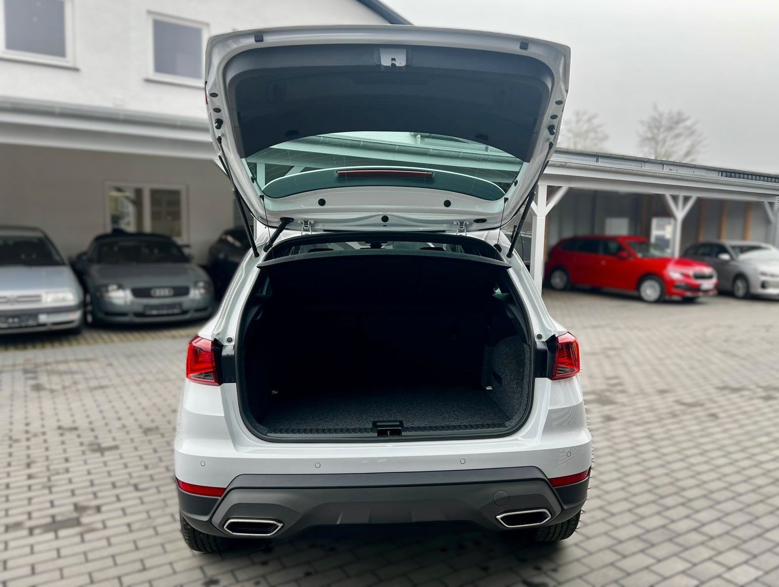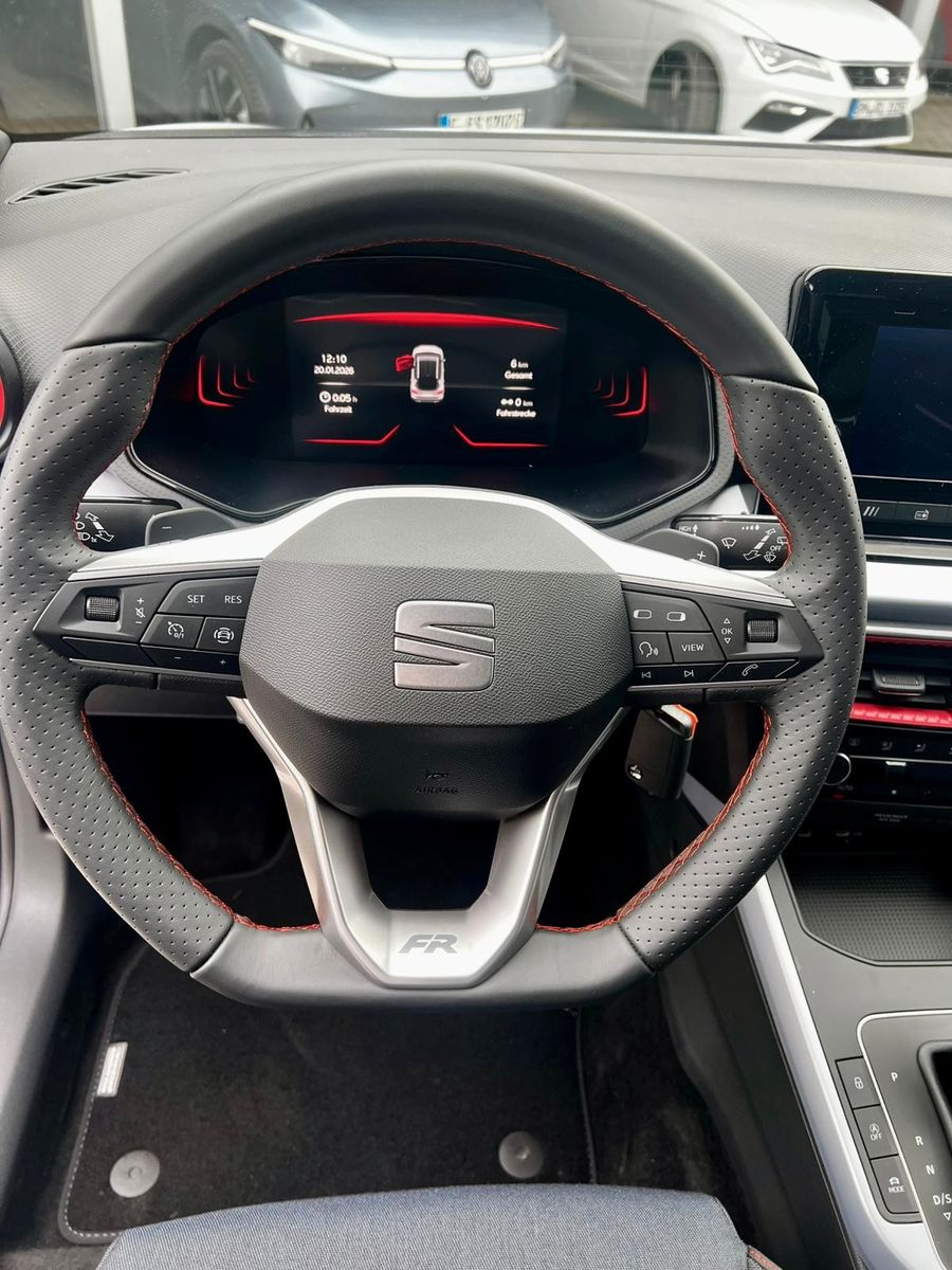 3. Bremsleuchte, Airbag Beifahrerseite abschaltbar, Airbag Fahrer-/Beifahrerseite, Ambiente-Beleuchtung LED, Antriebs-Schlupfregelung (ASR), Außenspiegel Dachfarbe, Außentemperaturanzeige, Bordcomputer, Bremsassistent, Chromleisten an Seitenfenstern, Dachhimmel schwarz, Dachreling, Einparkhilfe hinten, Einschaltautomatik für Fahrlicht, Elektr. Bremskraftverteilung, Elektron. Querdifferentialsperre (XDS), Fahrassistenz-System: Ablenkungs- und Müdigkeitserkennung, Fahrassistenz-System: Berganfahr-Assistent (Hill-Holder), Fahrassistenz-System: Fahrprofilauswahl (SEAT Drive Profile), Fahrassistenz-System: Multikollisionsbremse (Multi Collision Brake), Fahrassistenz-System: Spurhalteassistent, Fahrassistenz-System: Umfeldbeobachtungssystem (Front assist) mit City-Notbremsfunktion, Fahrassistenz-System: Verkehrszeichenerkennung, Fußraumbeleuchtung vorn LED, Gepäckraumabdeckung / Rollo, Geschwindigkeits-Begrenzeranlage, Gurtstraffer hinten, Heckleuchten LED, Heckscheibe heizbar, Heckscheibenwischer, Innenraumfilter: Pollenfilter, Isofix-Aufnahmen für Kindersitz, Karosserie: 5-türig, Klima-Komfort-Paket, Kofferraumbeleuchtung, Kombiinstrument digital (8 Zoll), Kopf-Airbag-System, Kopfstützen hinten, Kopfstützen vorn, Laderaumboden variabel und herausnehmbar, Lenkrad (Leder) mit Multifunktion, Lenksäule (Lenkrad) höhenverstellbar, Lenksäule (Lenkrad) verstellbar, LM-Felgen, Modellpflege, Motor 1,5 Ltr. - 110 kW 16V TSI ACT, Notrufsystem, Otto-Partikelfilter (OPF), Radstand 2566 mm, Reifendruck-Kontrollsystem, Reifenkontroll-Anzeige, Rücksitzlehne geteilt/klappbar (1/3-2/3), Schadstoffarm nach Abgasnorm Euro 6e, Scheinwerfer LED, SEAT Media-System, SEAT Media-System Touch Colour, Seitenairbag, Sitze vorn höhenverstellbar, Sonnenblende links mit Spiegel (beleuchtet), Sonnenblende rechts mit Spiegel (beleuchtet), Sportsitze vorn, Sprachsteuerungs-System, Start/Stop-Anlage, Stoßfänger FR-Design, Türgriffe außen lackiert, Warnanlage für Sicherheitsgurt-System, Wärmeschutzverglasung