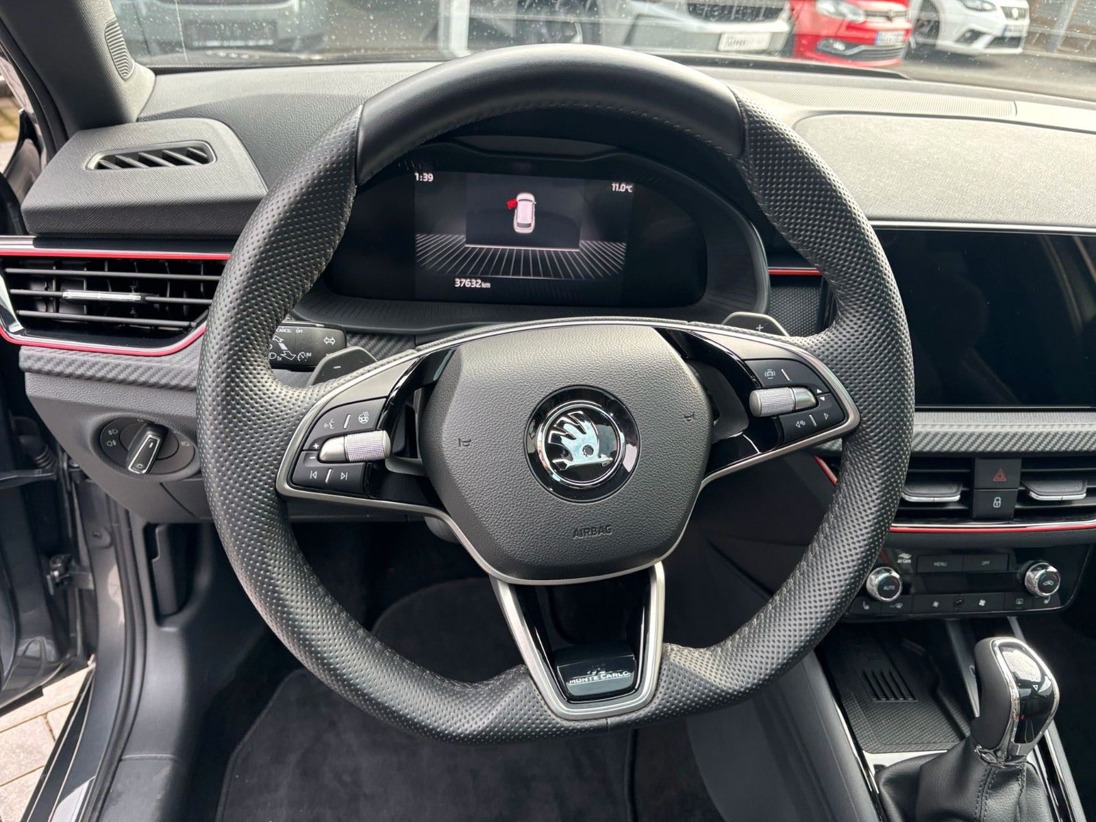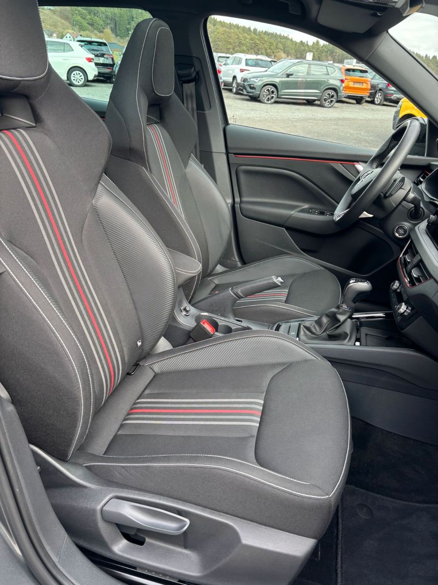 3. Bremsleuchte LED, 8 Lautsprecher, Ablagetasche an Vordersitzlehnen, Airbag Beifahrerseite abschaltbar, Airbag Fahrer-/Beifahrerseite, Antriebs-Schlupfregelung (ASR), Außenspiegel schwarz lackiert, Blinkleuchten LED in Außenspiegel integriert, Bremsassistent, Bremsenergierückgewinnung, Dachhimmel schwarz, Edelstahlpedale Sportdesign, Elektr. Bremskraftverteilung (EBV), Elektron. Differentialsperre (EDS), Elektron. Querdifferentialsperre (XDS), Fahrassistenz-System: Auffahrwarnsystem mit City-Notbremsfunktion (Frontradar-Assistent), Fahrassistenz-System: Berganfahr-Assistent (Hill-Holder), Fahrassistenz-System: Dynamischer Fernlichtassistent (Dynamic Light Assist), Fahrassistenz-System: Einschaltautomatik für Fahrlicht (Fahrlichtassistent), Fahrassistenz-System: Fahrprofilauswahl, Fahrassistenz-System: Multikollisionsbremse (Multi Collision Brake), Fahrassistenz-System: Müdigkeitserkennung, Fahrassistenz-System: Spurhalteassistent (Lane Assist), Fahrassistenz-System: Verkehrszeichenerkennung, Fensterheber elektrisch vorn + hinten, Freisprechanlage Telefon mit Bluetooth, Frontkamera, Gepäckraumabdeckung / Rollo, Gepäcksicherung / Gepäckbefestigung (Cargo-Elemente), Geschwindigkeits-Regelanlage (Tempomat) inkl. Geschwindigkeits-Begrenzeranlage, Handschuhfach beleuchtet, Heckleuchten LED mit dynamischem Blinklicht, Heckscheibe heizbar, Infotainment-Paket Basic, Infotainment-Paket Bolero, Infotainment-System mit 8,2" Display, Innenraumfilter: Staub- und Pollenfilter, Innenspiegel mit USB-Anschluss (Typ C), Interieur-Design-Paket Monte Carlo, Isofix-Aufnahmen für Kindersitz an Beifahrersitz, Isofix-Aufnahmen für Kindersitz an Rücksitz, Karosserie: 5-türig, Kennzeichenbeleuchtung LED, Klimaanlage Climatronic 2-Zonen, Kofferraumbeleuchtung, Kombiinstrument digital (virtual cockpit), Komfort-Paket, Kopf-Airbag-System, Lendenwirbelstütze Sitz vorn links, Lendenwirbelstütze Sitz vorn rechts, Lenkrad (Sport/Leder - 3-Speichen, unten abgeflacht) mit Multifunktion und Schaltfunktion, Lenkrad heizbar, Lenksäule (Lenkrad) verstellbar (vertikal / axial), Licht- und Sicht-Paket Plus, Lichtassistent (Coming Home, Leaving Home), LM-Felgen, Matrix-LED-Scheinwerfer, Mittelarmlehne hinten, Modellpflege, Motor 1,5 Ltr. - 110 kW 16V TSI ACT, Multifunktionsanzeige, Nebelscheinwerfer mit Abbiegelicht, Netzprogramm im Kofferraum, Notrufsystem, Open-Sky-Paket, Otto-Partikelfilter (OPF), Panoramadach fest (Glas), Phonebox, Radioempfang digital (DAB+), Radstand 2651 mm, Reifen-Reparaturkit, Reifendruck-Kontrollsystem, Rückfahrkamera, Rücksitzlehne geteilt/klappbar (1/3-2/3), Schadstoffarm nach Abgasnorm Euro 6e, Schalt-/Wählhebelgriff Leder, Schriftzug schwarz, Schwellerabdeckung / -verkleidung schwarz glänzend, Seitenairbag vorn, Seitenscheiben hinten und Heckscheibe abgedunkelt (SunSet), Service-System: Remote Services, Sitz vorn links höhenverstellbar, Sitz vorn rechts höhenverstellbar, Sitzbezug / Polsterung: Monte Carlo, Sonnenblende links mit Spiegel, Sonnenblende rechts mit Spiegel, Start/Stop-Anlage, Steckdose (12V-Anschluß) im Koffer-/Laderaum, Stoßfängerabdeckung vorn und hinten, schwarz glänzend, Textilfussmatten, Türgriffe außen Wagenfarbe, USB-Ladeanschlüsse (2-fach, Typ C) für 2.Sitzreihe, USB-Schnittstelle vorn (2-fach, Typ C), Verzurrösen Koffer-/Laderaum, Wireless SmartLink
