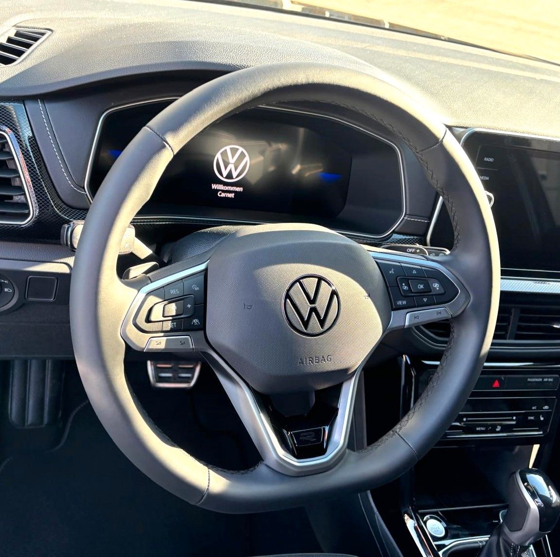 3-Punkt-Sicherheitsgurt hinten mitte, Abbiege- und Allwetterlicht / Schlechtwetter-Licht, Ablagetasche an Vordersitzlehnen, Airbag Fahrer-/Beifahrerseite, Beifahrerairbag abschaltbar, Ambiente-Beleuchtung, Anzeige für Waschwasserstand, Audiosystem Ready 2 Discover (inkl. Streaming & Internet, Touchscreen, Bluetooth), Ausstattung R-Line, Automatische Fahrlichtschaltung mit Leaving Home / Coming-Home-Lichtfunktion, Tagfahrlicht LED, Außenspiegel elektr. verstell-, heiz- und anklappbar mit Spiegelabsenkung rechts, Außenspiegel mit Umfeldleuchte und Projektionsfunktion, Außenspiegel und Türgriffe außen in Wagenfarbe, Chromeinfassung Instrumente, Ausströmer und Schalthebelkulisse, Chromleisten an Seitenfenstern, Dachhimmel Stoff, schwarz, Dachreling silber eloxiert, Digital Cockpit (Instrumentenanzeige digital), Einparkhilfe vorn und hinten, Einstiegsleisten vorn R-Line, Elektron. Stabilitäts-Programm (ESP) Bremsassistent, ASR/ABS, EDS, MSR, Fahrassistenz-System: Ablenkungs- und Müdigkeitserkennung, Fahrassistenz-System: Berganfahr-Assistent, Fahrassistenz-System: Dynamische Fernlichtregulierung (Dynamic Light Assist), Fahrassistenz-System: Fußgängererkennung, Fahrassistenz-System: Spurhalteassistent (Lane Assist), Fahrassistenz-System: Umfeldbeobachtungssystem (Front assist) mit City-Notbremsfunktion, Fahrassistenz-System: Verkehrszeichenerkennung, Fensterheber elektrisch vorn und hinten, Frontscheibe Verbundglas, wärmedämmend, Fußmatten Textil, Fußraumbeleuchtung vorn, Gepäckraumbeleuchtung, Gepäckraumboden höhenverstellbar, Geschwindigkeits-Begrenzeranlage, Handbremshebelgriff Leder, Heckleuchten LED, Blinkleuchten dynamisch, Innen- und Leseleuchten vorn und hinten LED, Innenausstattung: Dekoreinlagen R-Line, Innenspiegel abblendbar, Isofix-Aufnahmen für Kindersitz an Beifahrersitz und Rücksitz (inkl. i-Size-Kindersitze), Karosserie: 5-türig, Kopf-Airbag-System vorn und hinten inkl. Seitenairbag vorn, Kopfstützen hinten (3-fach), Laderaumabdeckung, Lautsprecher (6), LED Lichtleiste zwischen Scheinwerfer, Lendenwirbelstützen vorn, Lenkrad (Leder) mit Multifunktion und Schaltfunktion, Lenksäule (Lenkrad) mechan. verstellbar, Höhen-/Längsverstellung, Leuchtweitenregelung automatisch, LM-Felgen, Matrix-LED-Scheinwerfer (IQ.Light), Mittelarmlehne vorn mit Ablagefach und USB-Anschlüsse (2) hinten, Mobile Online Dienste Vorbereitung We Connect / We Connect Plus / VW Connect / VW Connect Plus, Mobiltelefon Schnittstelle mit kabelloser Ladefunktion, Modellpflege, Motor 1,0 Ltr. - 85 kW TSI, Multimedia-Schnittstelle 2 x USB (Typ C) vorn und 2 x USB-Ladeanschluß (Typ C) Mittelkonsole hinten (45 W), Nichtraucher-Paket, Notrufsystem, Otto-Partikelfilter (OPF), Pedale Edelstahl, Radioempfang digital (DAB+), Radstand Standard, Reifen-Reparaturkit (Tire Mobility Set), Reifenkontroll-Anzeige, Rücksitzbank ungeteilt, verschiebbar, Lehne geteilt klappbar, Schadstoffarm nach Abgasnorm Euro 6e, Schalt-/Wählhebelgriff Leder, Scheibenwischer mit Intervallschaltung und Lichtsensor, Schublade / Ablagefach unter Sitz vorn rechts, Sicherheitsgurte hinten außen mit Gurtstraffer, Sicherheitsgurte vorn mit Gurtstraffer, höhenverstellbar, Sitzbezug / Polsterung: Stoff R-Line, Sitze vorn höhenverstellbar, Sitze: Sport-Komfortsitze vorn, Sitzheizung vorn, Sitzlehne vorn rechts umklappbar, Sonnenblenden mit Spiegel, Start/Stop-Anlage mit Rekuperation, Stoßfänger R-Line, Verbandkasten und Warndreieck, Warnanlage für Sicherheitsgurte vorn und hinten, Zentralverriegelung mit Fernbedienung, ohne Safesicherung
